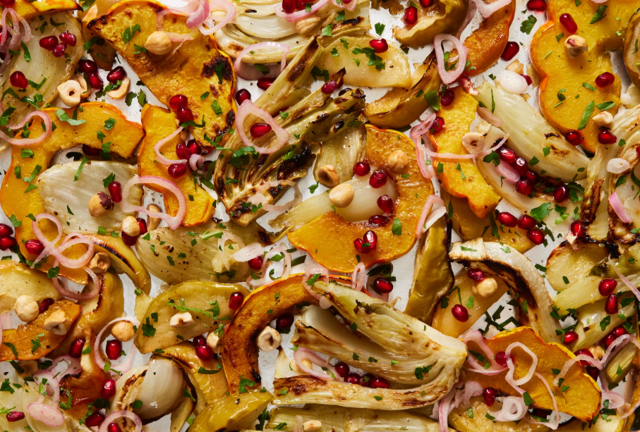 Roasted Fennel, Squash & Apples, with Hazelnuts and Pomegranate / 90